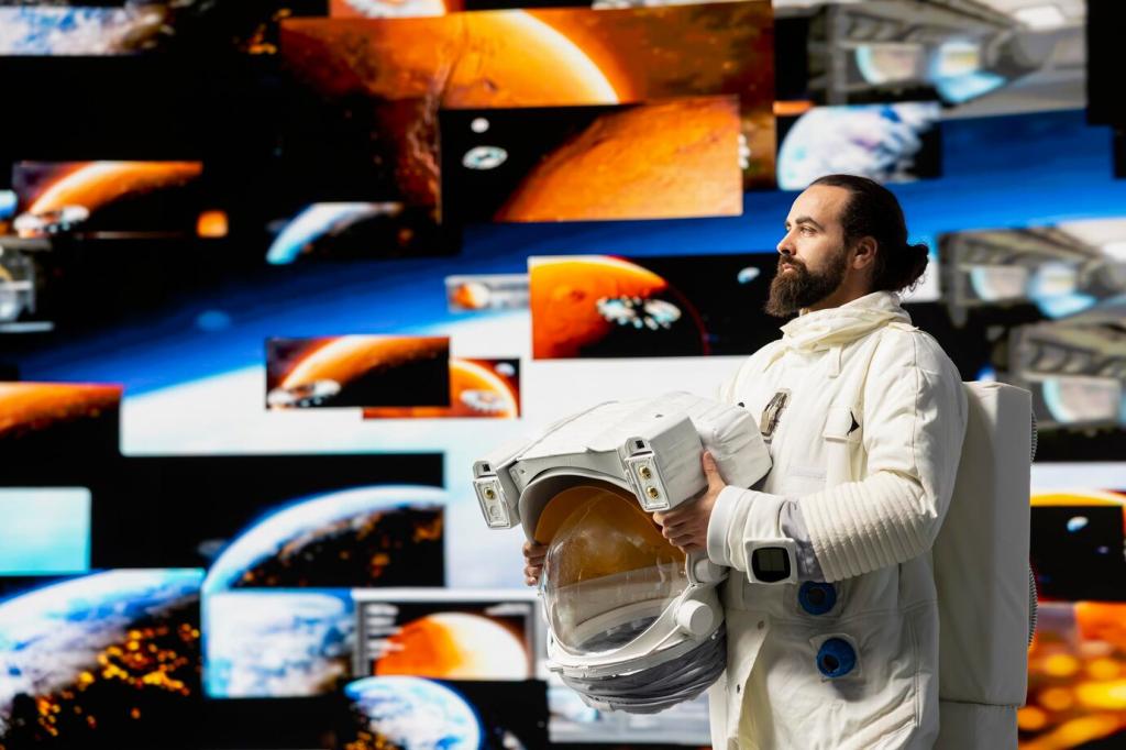 Selten getragenes in Vakuumbeuteln hoch lagern, leichter Zugriff bleibt unten. So nutzt du Deckenbereiche, ohne den Alltag zu erschweren oder die Sicht zu blockieren.